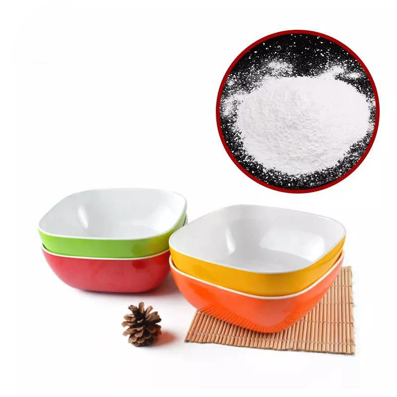Melamin reçine tozu toksik değildir, tatsızdır, kokusuzdur.MMC veya UF sofra takımlarının parlaklığını, aşınmaya dayanıklılığını iyileştirmek için kullanılabilen ideal bir amino kalıplama plastik malzemesidir.